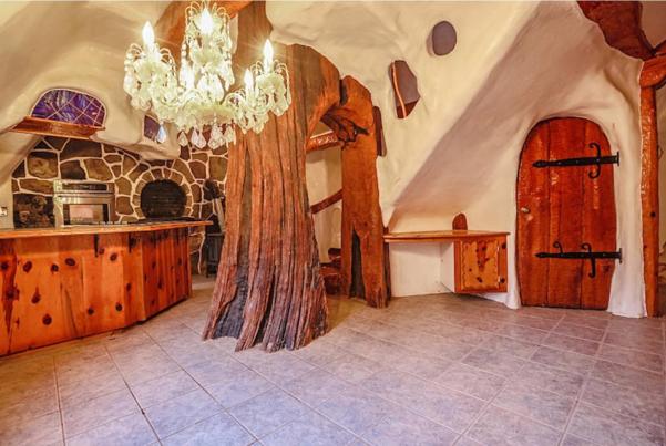 La mayor parte del interior es terminado a mano, desde las puertas soldadas, las vigas esculpidas, y la chimenea gigante de piedra.